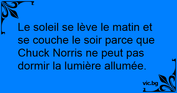 Le soleil se lève le matin et se couche le soir parce que Chuck Norris ne peut pas dormir la lumière allumée.