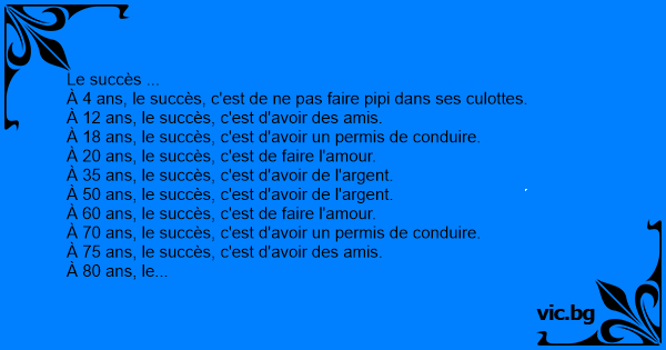 À 80 ans, le succès, c'est de ne pas faire pipi dans ses culottes.