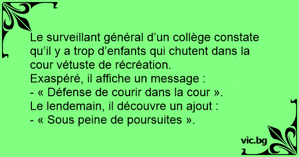 - « Défense de courir dans la cour ».