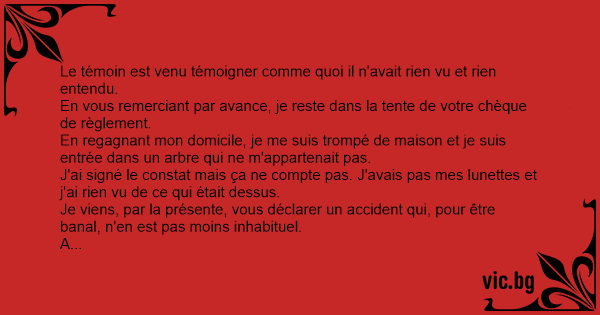 Je viens, par la présente, vous déclarer un accident qui, pour être banal, n'en est pas moins inhabituel.
