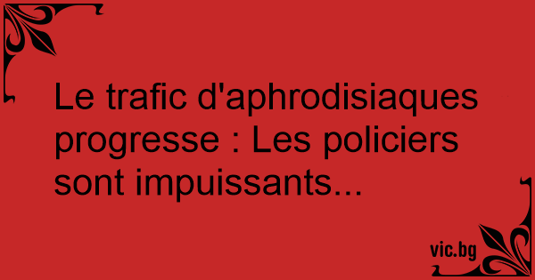 Le trafic d'aphrodisiaques progresse : Les policiers sont impuissants...