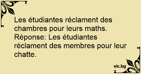 Les étudiantes réclament des chambres pour leurs maths.<br />Réponse: Les étudiantes réclament des membres pour leur сhатте.