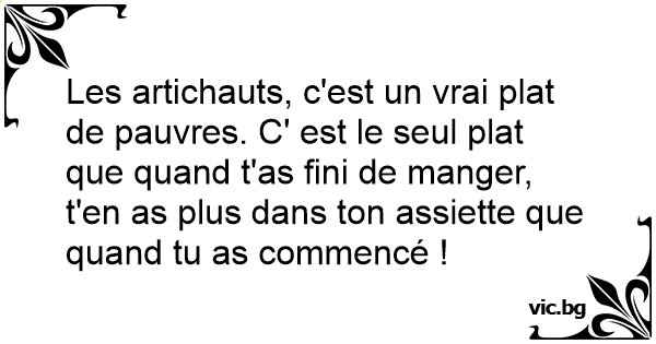 Les artichauts, c'est un vrai plat de pauvres. C' est le seul plat que quand t'as fini de manger, t'en as plus dans ton assiette que quand tu as commencé !