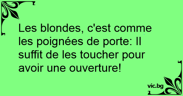 Les blondes, c'est comme les poignées de porte: Il suffit de les toucher pour avoir une ouverture!