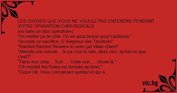 LES CHOSES QUE VOUS NE VOULEZ PAS ENTENDRE PENDANT VOTRE OPéRATION CHIRURGICALE: