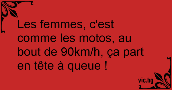 Les femmes, c'est comme les motos, au bout de 90km/h, ça part en tête à queue !