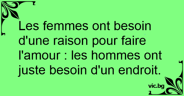 Les femmes ont besoin d'une raison pour faire l'amour : les hommes ont juste besoin d'un endroit.