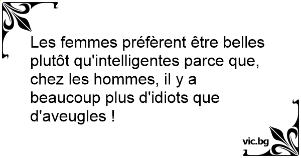 Les femmes préfèrent être belles plutôt qu'intelligentes parce que, chez les hommes, il y a beaucoup plus d'idiots que d'aveugles !