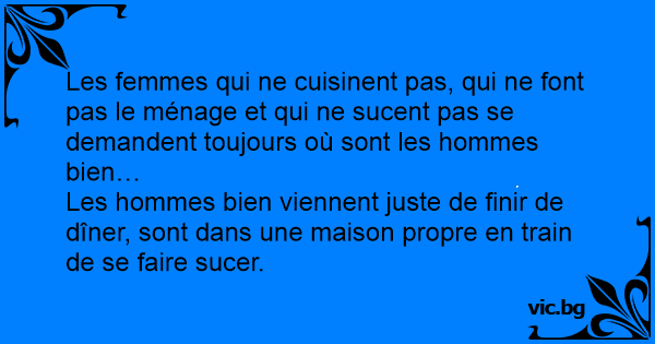 Les femmes qui ne cuisinent pas, qui ne font pas le ménage et qui ne sucent pas se demandent toujours où sont les hommes bien…