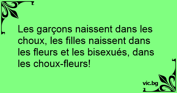 Les garçons naissent dans les choux, les filles naissent dans les fleurs et les bisexués, dans les choux-fleurs!