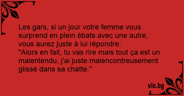 Les gars, si un jour votre femme vous surprend en plein ébats avec une autre, vous aurez juste à lui répondre: