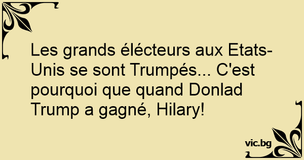 Les grands élécteurs aux Etats-Unis se sont Trumpés... C'est pourquoi que quand Donlad Trump a gagné, Hilary!