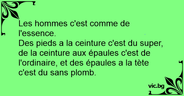 Des pieds a la ceinture c'est du super, de la ceinture aux épaules c'est de l'ordinaire, et des épaules a la tète c'est du sans plomb.