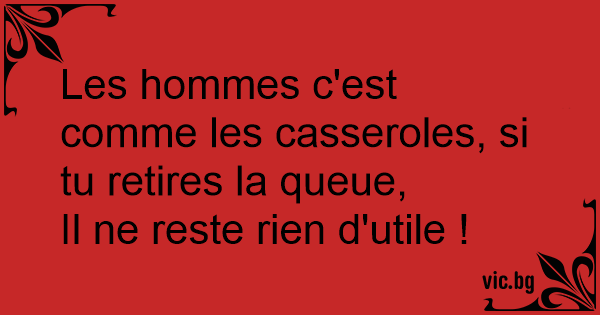Les hommes c'est comme les casseroles, si tu retires la queue,