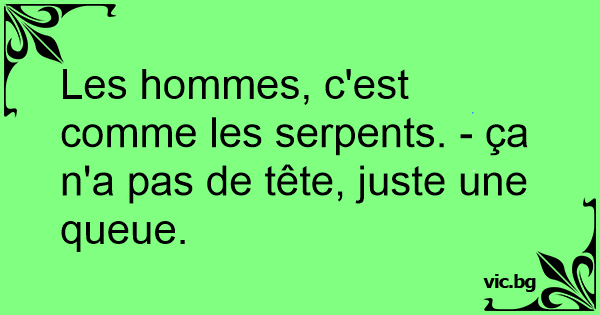 Les hommes, c'est comme les serpents. - ça n'a pas de tête, juste une queue.