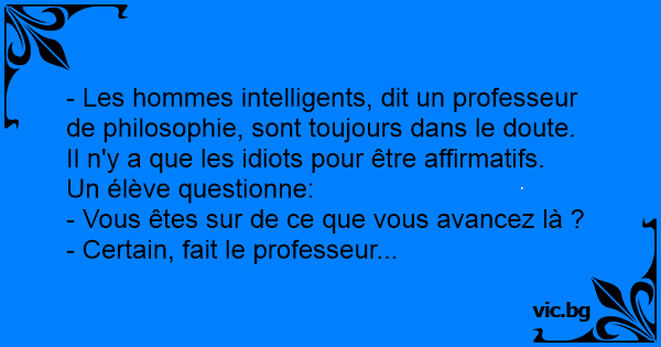 - Les hommes intelligents, dit un professeur de philosophie, sont toujours dans le doute. Il n'y a que les idiots pour être affirmatifs.
