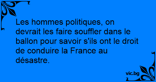 Les hommes politiques, on devrait les faire souffler dans le ballon pour savoir s'ils ont le droit de conduire la France au désastre.