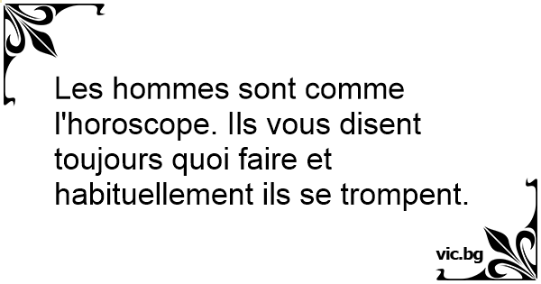 Les hommes sont comme l'horoscope. Ils vous disent toujours quoi faire et habituellement ils se trompent.