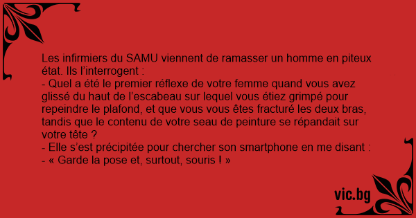 Les infirmiers du SAMU viennent de ramasser un homme en piteux état. Ils l’interrogent :
