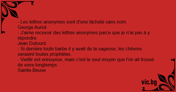 - J'aime recevoir des lettres anonymes parce que je n'ai pas à y répondre