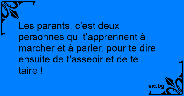 Les parents, c’est deux personnes qui t’apprennent à marcher et à parler, pour te dire ensuite de t’asseoir et de te taire !