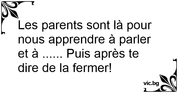 Les parents sont là pour nous apprendre à parler et à ...... Puis après te dire de la fermer!