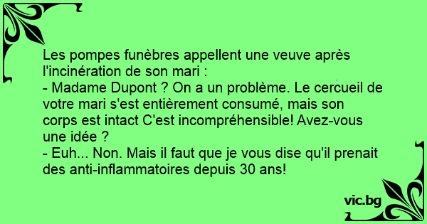 - Madame Dupont ? On a un problème. Le cercueil de votre mari s'est entièrement consumé, mais son corps est intact C'est incompréhensible! Avez-vous une idée ?