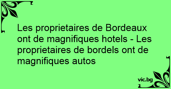 Les proprietaires de Bordeaux ont de magnifiques hotels - Les proprietaires de bordels ont de magnifiques autos