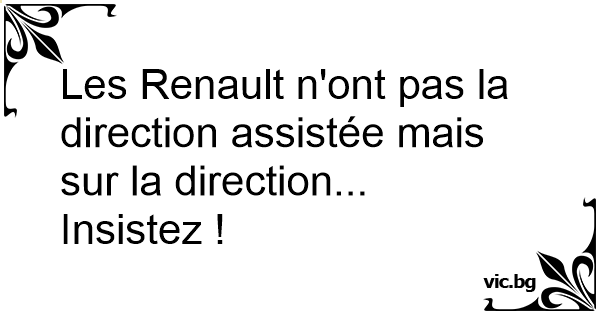 Les Renault n'ont pas la direction assistée mais sur la direction... Insistez !