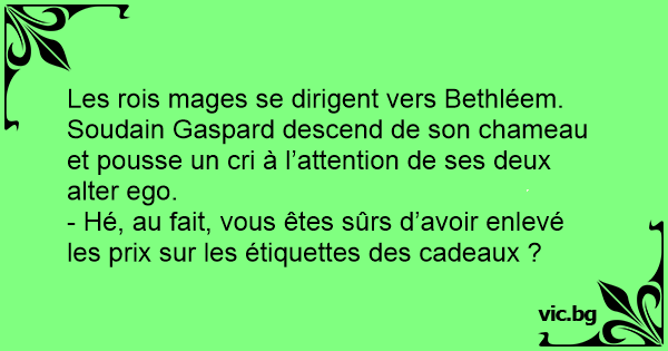 Les rois mages se dirigent vers Bethléem. Soudain Gaspard descend de son chameau et pousse un cri à l’attention de ses deux alter ego.