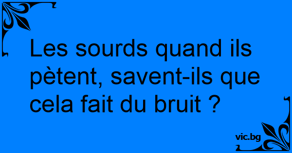 Les sourds quand ils pètent, savent-ils que cela fait du bruit ?
