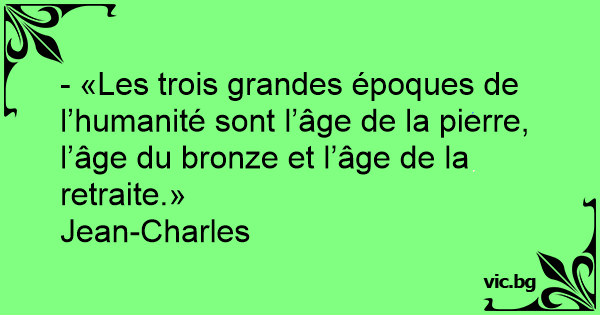 - «Les trois grandes époques de l’humanité sont l’âge de la pierre, l’âge du bronze et l’âge de la retraite.»
