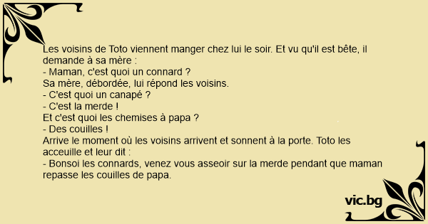 Les voisins de Toto viennent manger chez lui le soir. Et vu qu'il est bête, il demande à sa mère :