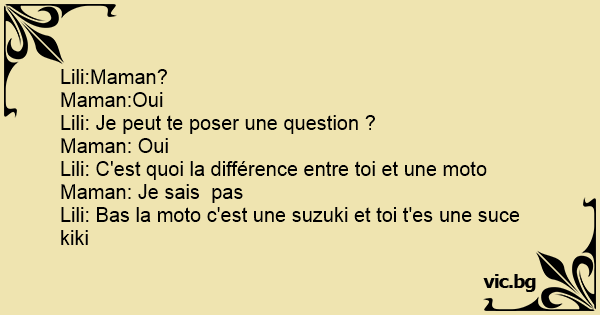 Lili: Bas la moto c'est une suzuki et toi t'es une suce kiki