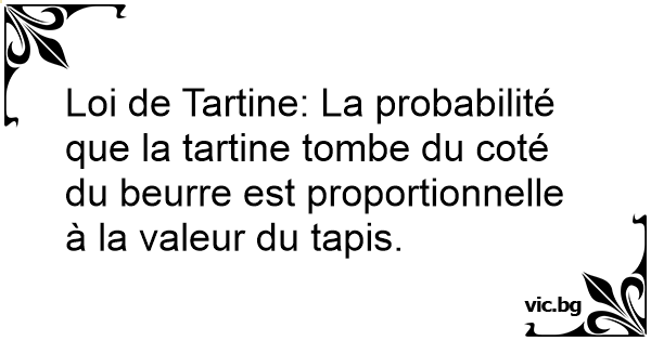 Loi de Tartine: La probabilité que la tartine tombe du coté du beurre est proportionnelle à la valeur du tapis.