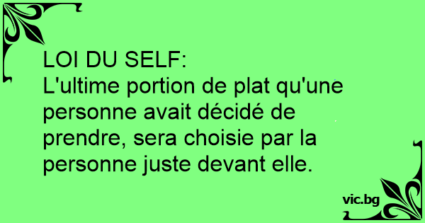 L'ultime portion de plat qu'une personne avait décidé de prendre, sera choisie par la personne juste devant elle.