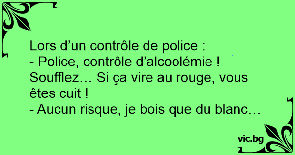- Police, contrôle d’alcoolémie ! Soufflez… Si ça vire au rouge, vous êtes cuit !