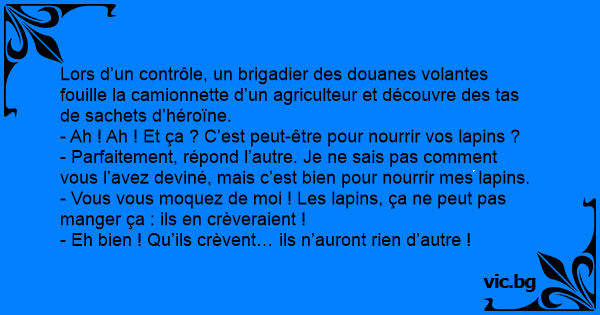 - Parfaitement, répond l’autre. Je ne sais pas comment vous l’avez deviné, mais c’est bien pour nourrir mes lapins.