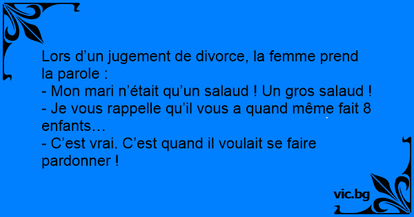Lors d’un jugement de divorce, la femme prend la parole :
