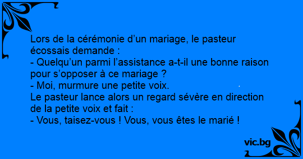 - Quelqu’un parmi l’assistance a-t-il une воnnе raison pour s’opposer à ce mariage ?