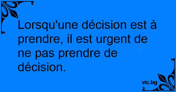 Lorsqu'une décision est à prendre, il est urgent de ne pas prendre de décision.