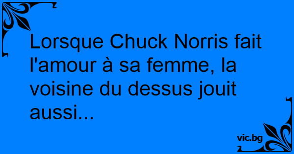 Lorsque Chuck Norris fait l'amour à sa femme, la voisine du dessus jouit aussi...