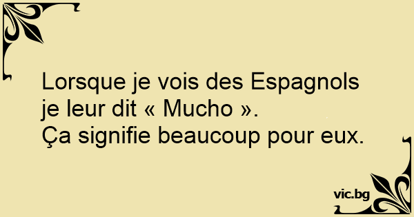 Lorsque je vois des Espagnols je leur dit « Mucho ».