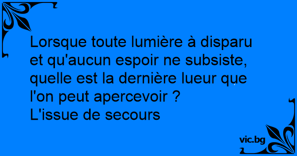Lorsque toute lumière à disparu et qu'aucun espoir ne subsiste, quelle est la dernière lueur que l'on peut apercevoir ?