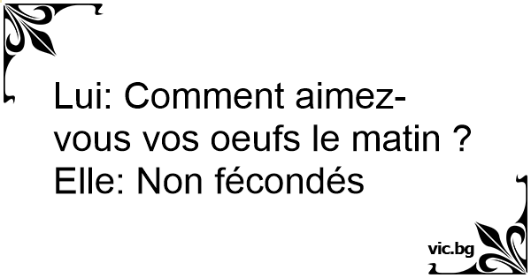 Lui: Comment aimez-vous vos oeufs le matin ?