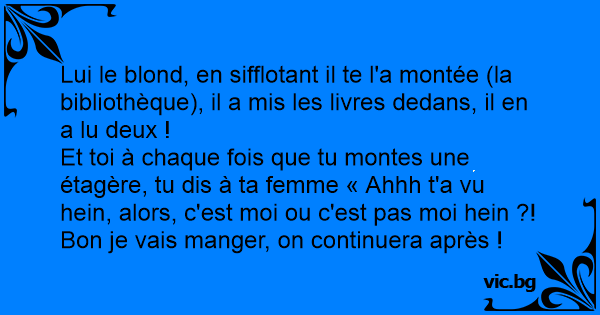 Lui le blond, en sifflotant il te l'a montée (la bibliothèque), il a mis les livres dedans, il en a lu deux !