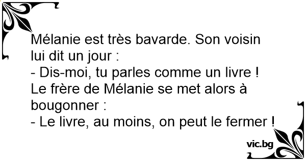 Mélanie est très bavarde. Son voisin lui dit un jour :
