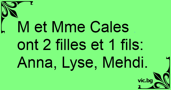 M et Mme Cales ont 2 filles et 1 fils: Anna, Lyse, Mehdi.