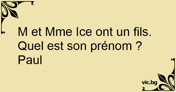 M et Mme Ice ont un fils. Quel est son prénom ?