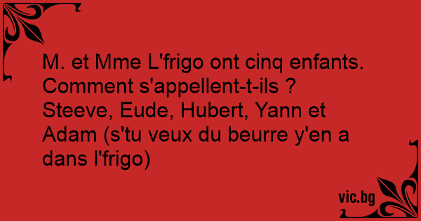 M. et Mme L'frigo ont cinq enfants. Comment s'appellent-t-ils ?